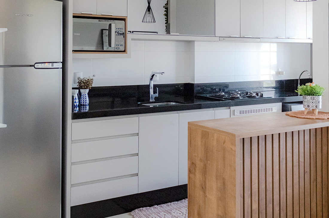 A ideia desse projeto foi transformar esse ambiente de cozinha em um espaço clean e aconchegante. Pensamos em cada detalhe para melhor atender a necessidade do cliente, desde os seus eletros embutidos a por um espelho pra dar uma certa amplitude ao seu ambiente.